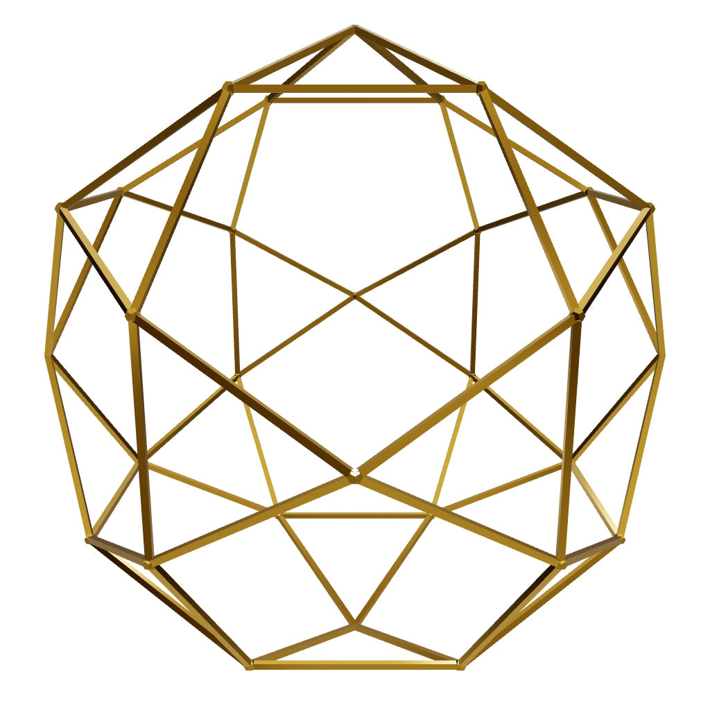 The icosidodecahedron unites the icosahedron and dodecahedron — Water and Spirit in sacred marriage. Its 32 faces of triangles and pentagons create a vessel for emotional wisdom, where intuition meets cosmic understanding. This form opens pathways to higher consciousness through the heart.