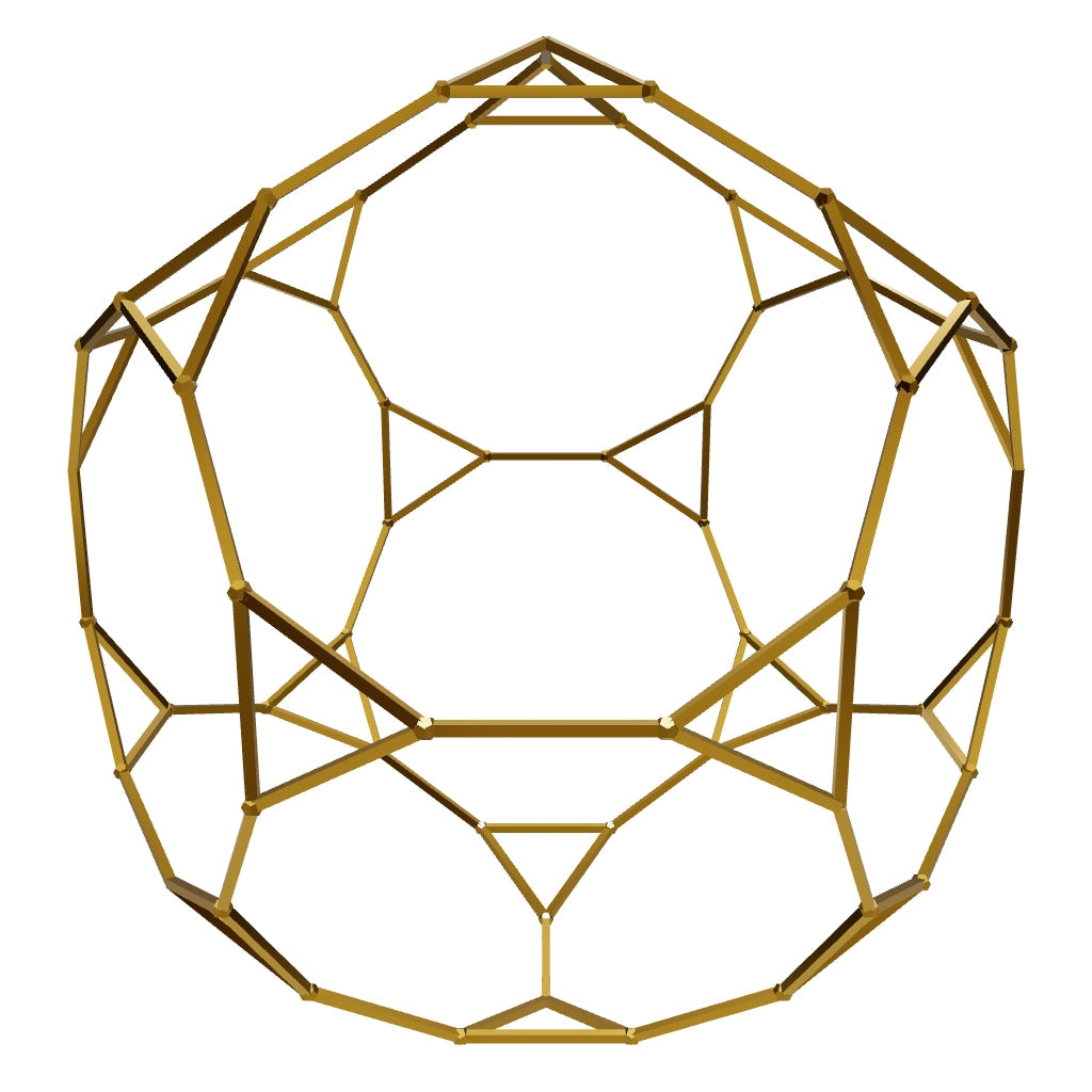 The truncated dodecahedron expands Spirit's pentagonal wisdom into ten-sided decagons. Its 32 faces represent cosmic consciousness made approachable — universal truth expressed in forms we can comprehend. This solid serves as a translator between infinite wisdom and human understanding.
